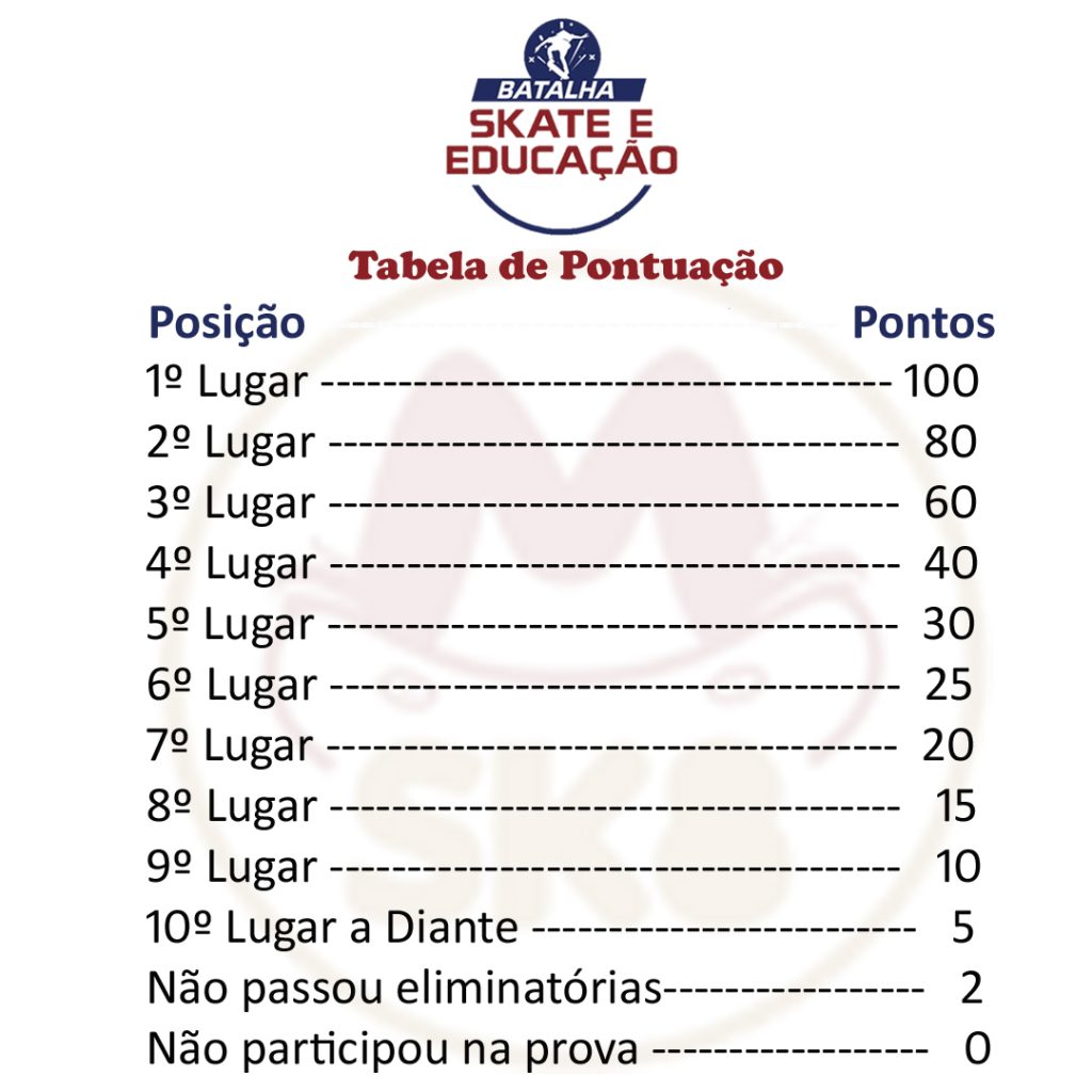 Com esta iniciativa pretendemos motivar mais a competividade dos skatistas e usar a mesma tabela para apoios dos skatistas mais destacados em participar em provas internacionais e em equipamento que podem ser adqueridos para a este fim.